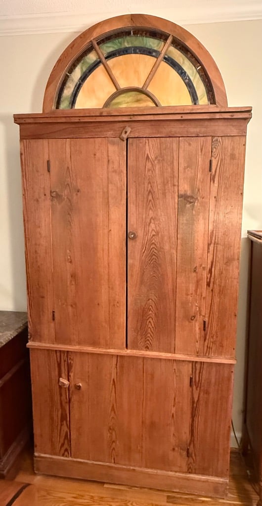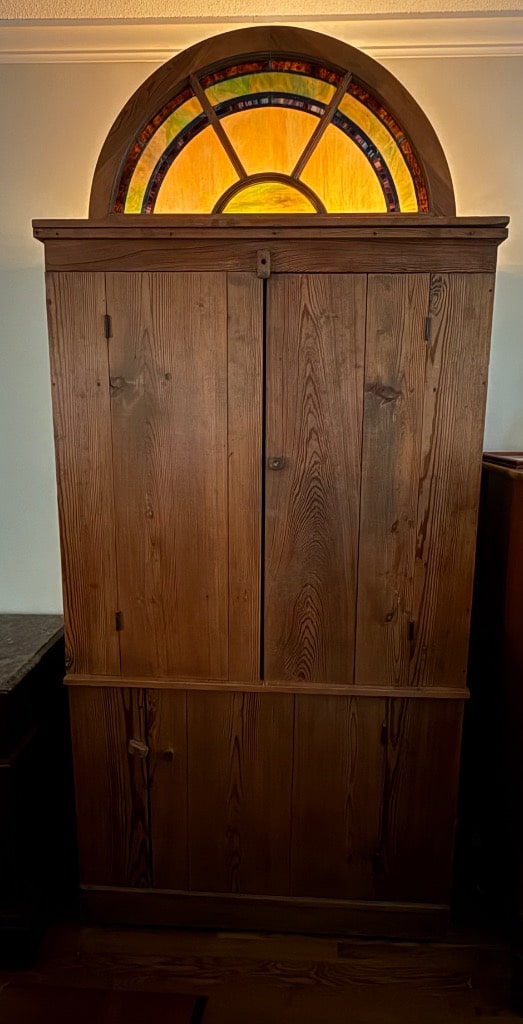 Pine Linen Press with Stained Glass (Lit) Decorative Top