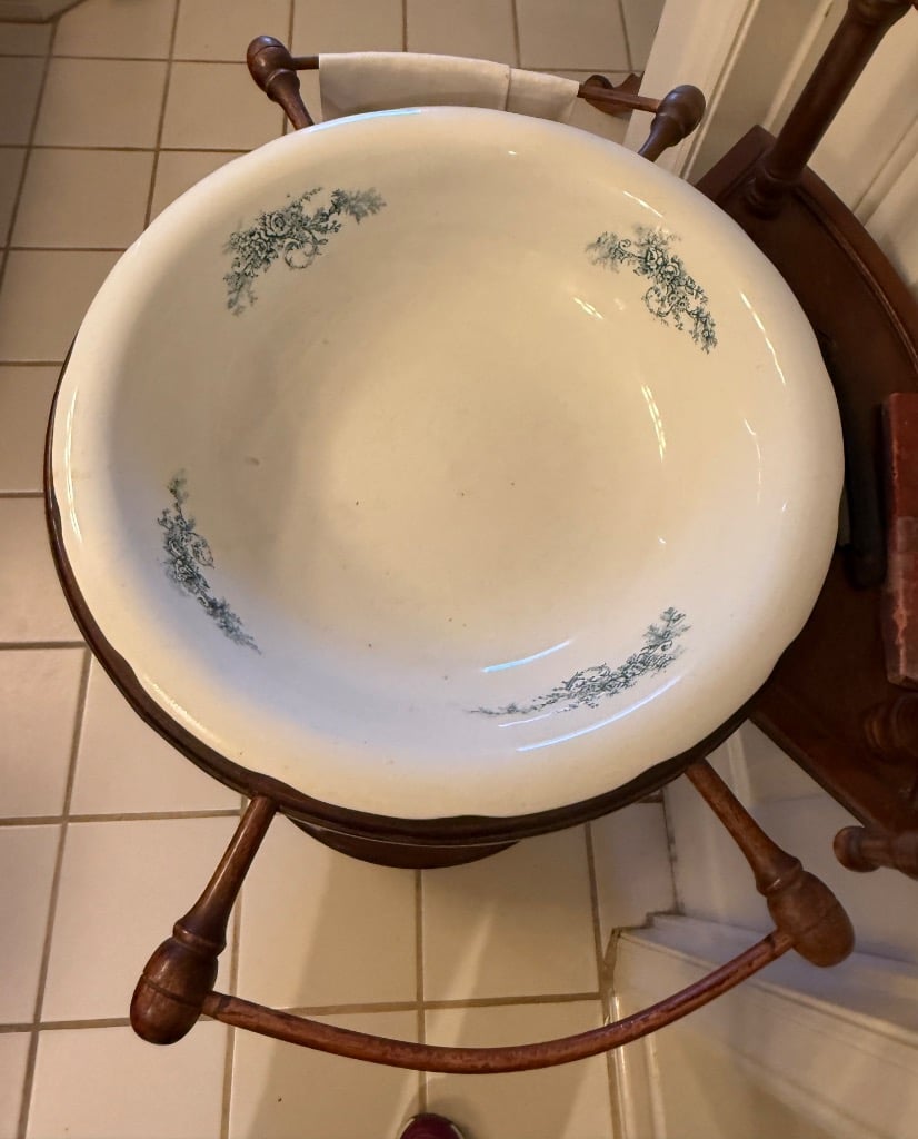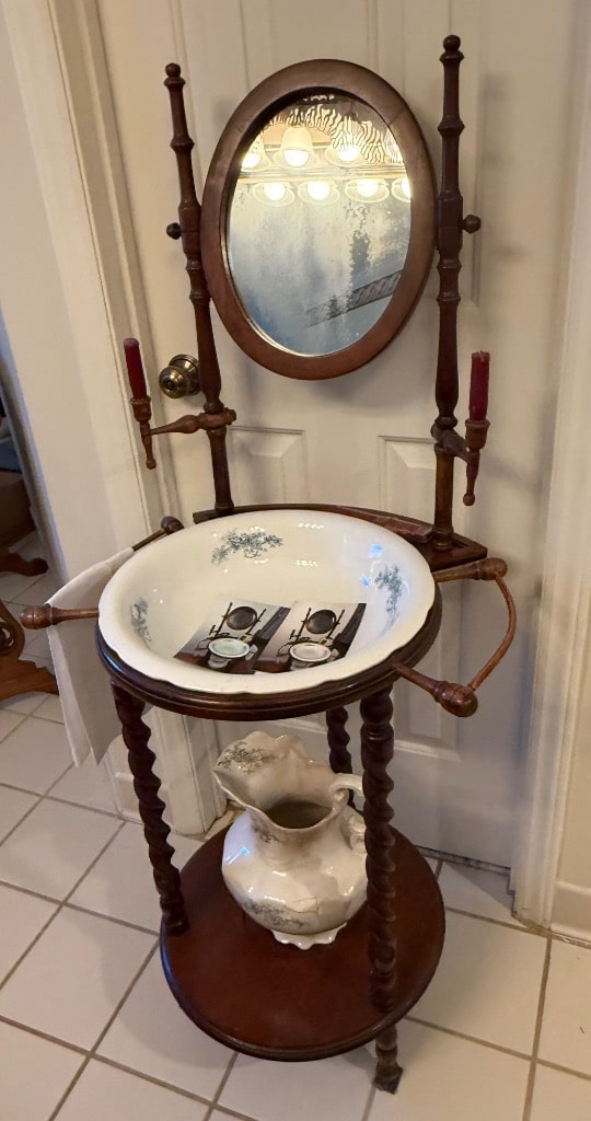 Washstand with Mirror and Barleytwist Uprights, Bowl and Pitcher
