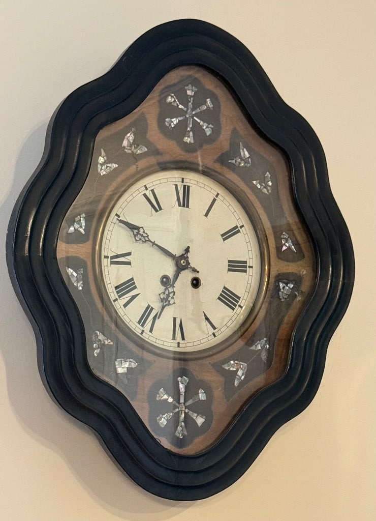 French Napoleon III Style Scalloped Wall Clock with Mother of Pearl Inlay
