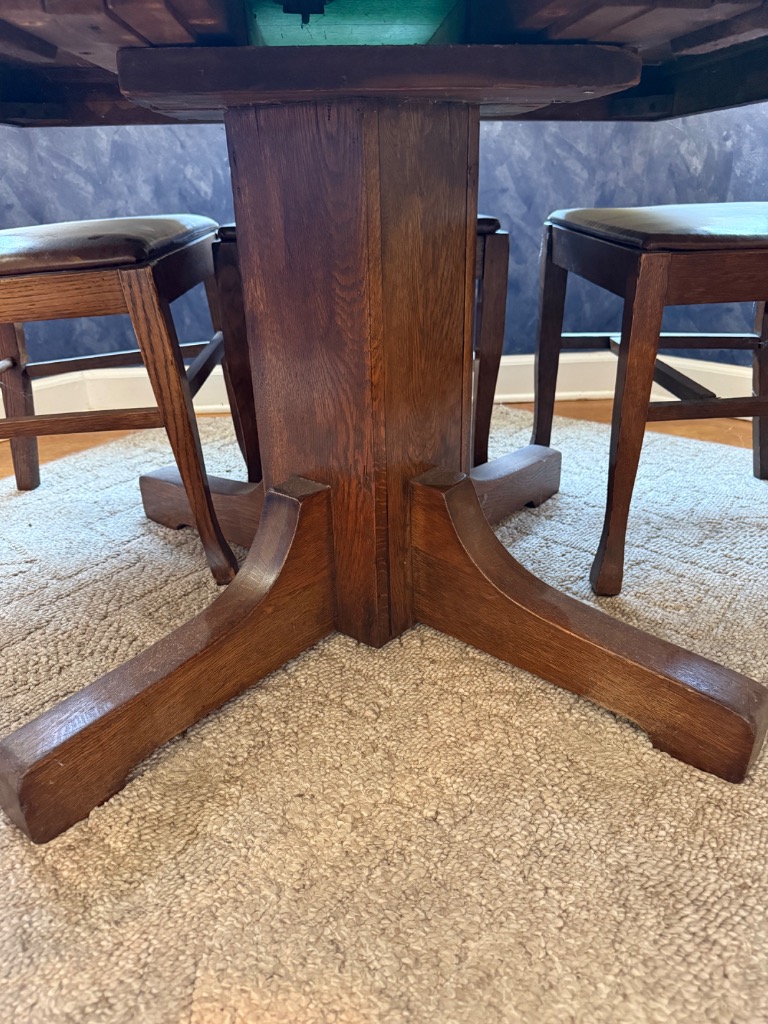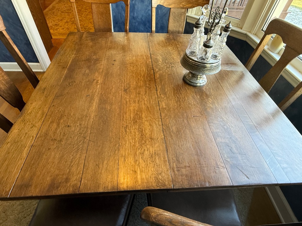 Oak Board Pedestal Table with 6 Chairs