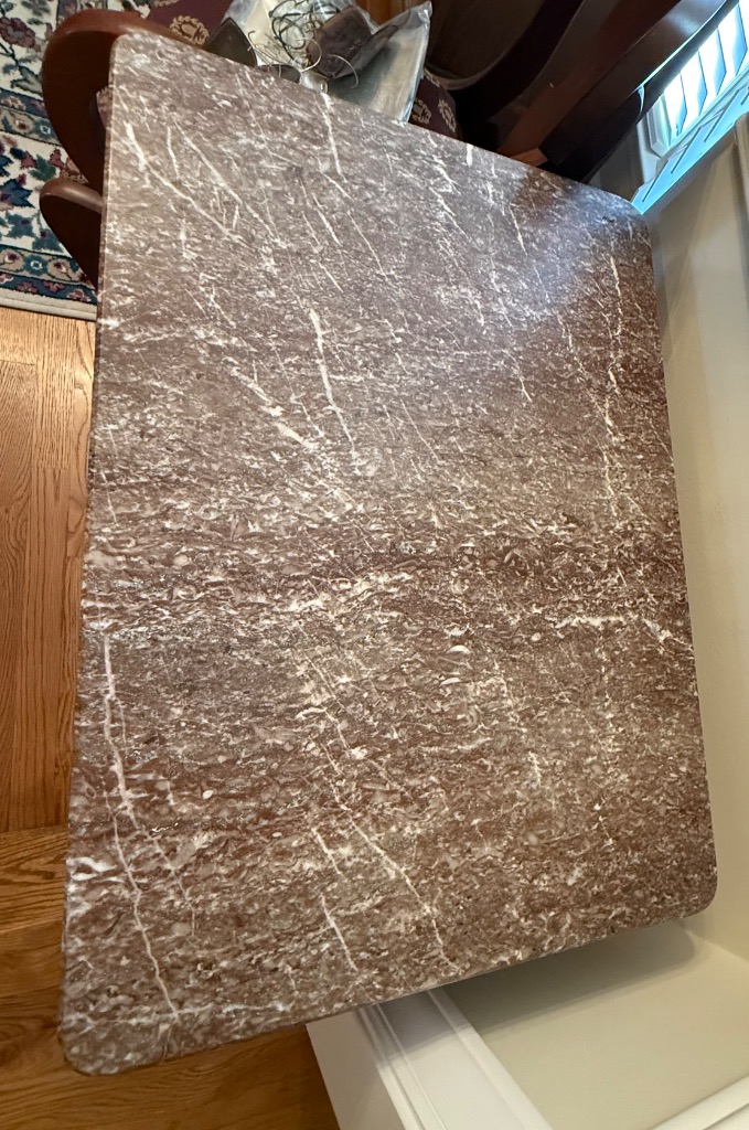 Pedestal Base Side Table with Marble Top – Brown