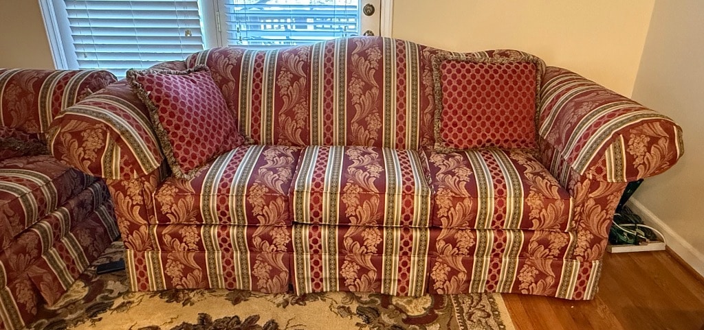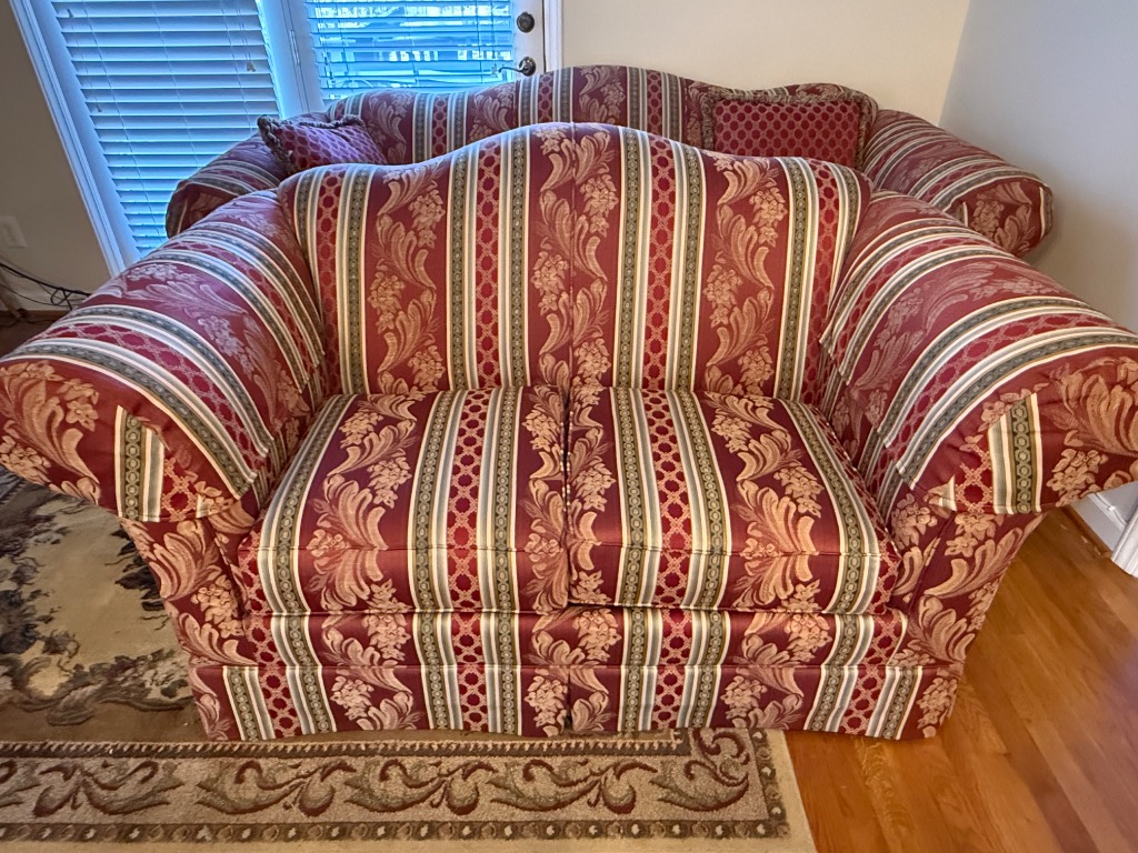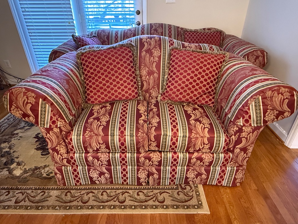 King Hickory Furniture Burgundy, Green and Cream Upholstered Loveseat