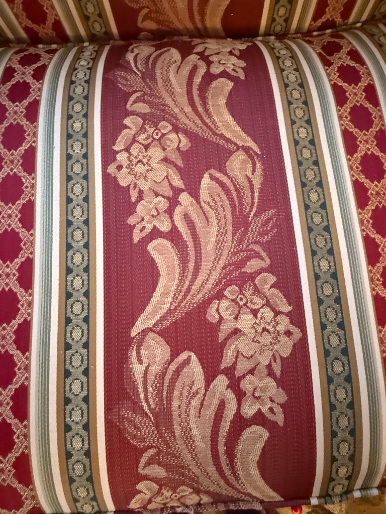 King Hickory Furniture Burgundy, Green and Cream Upholstered Sofa
