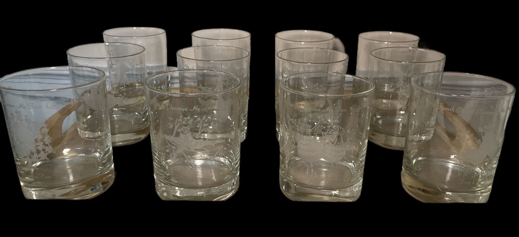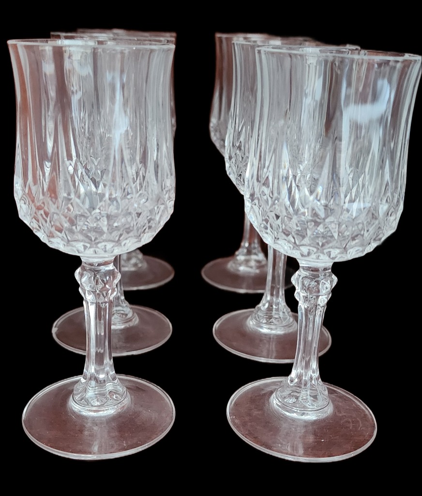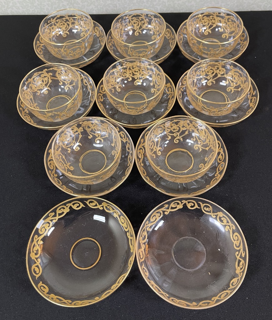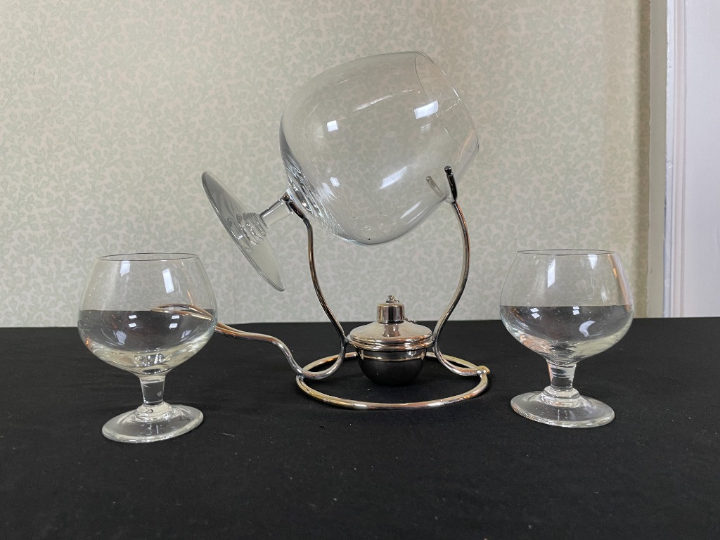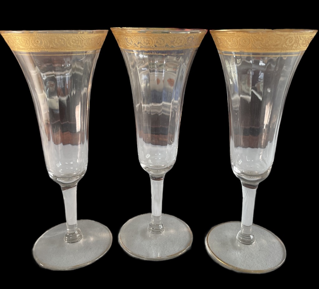 • Cut crystal tumblers, etched wine glasses, and Cartier brandy snifters