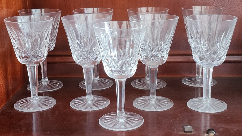 • Waterford Lismore stemware, Millennium flutes, and Ashling decanter