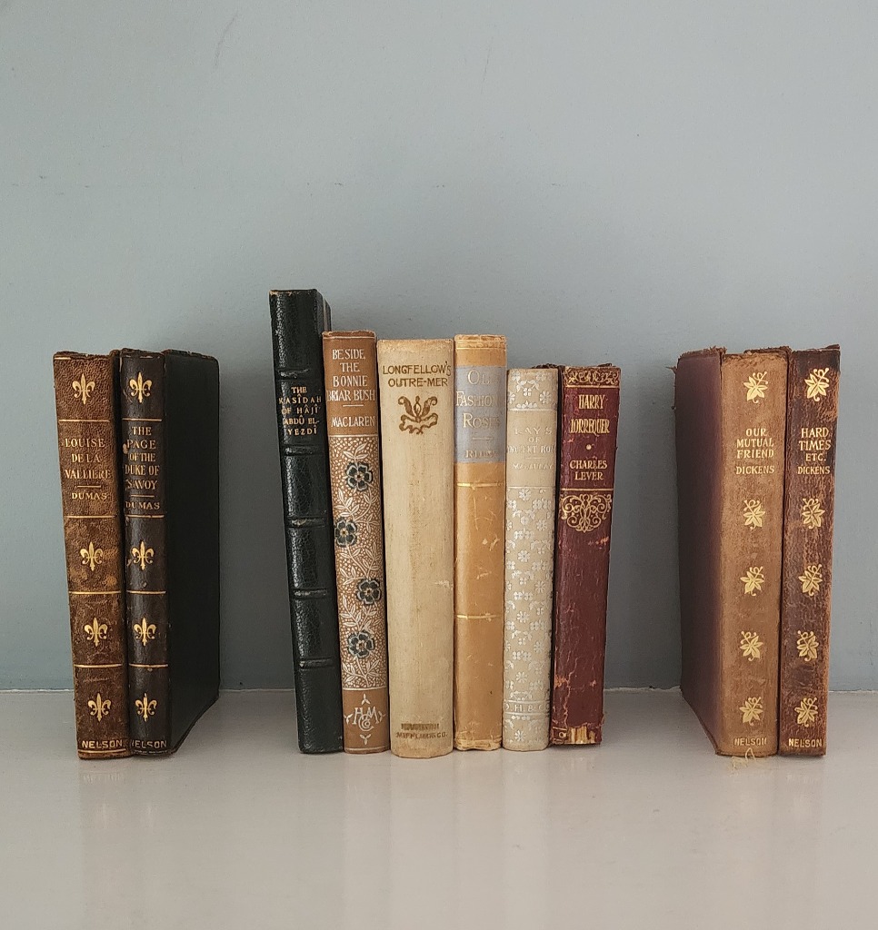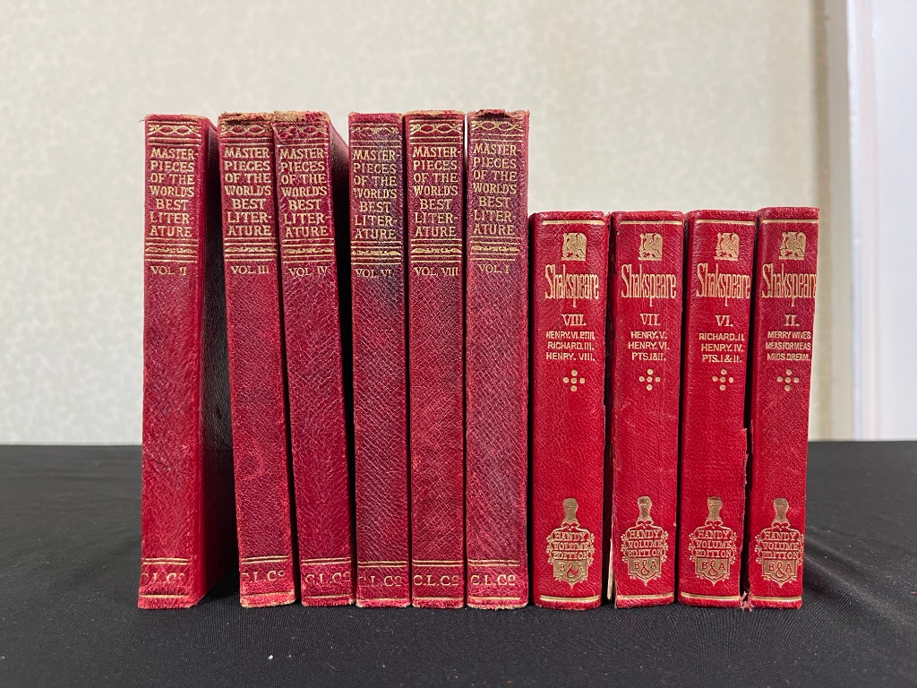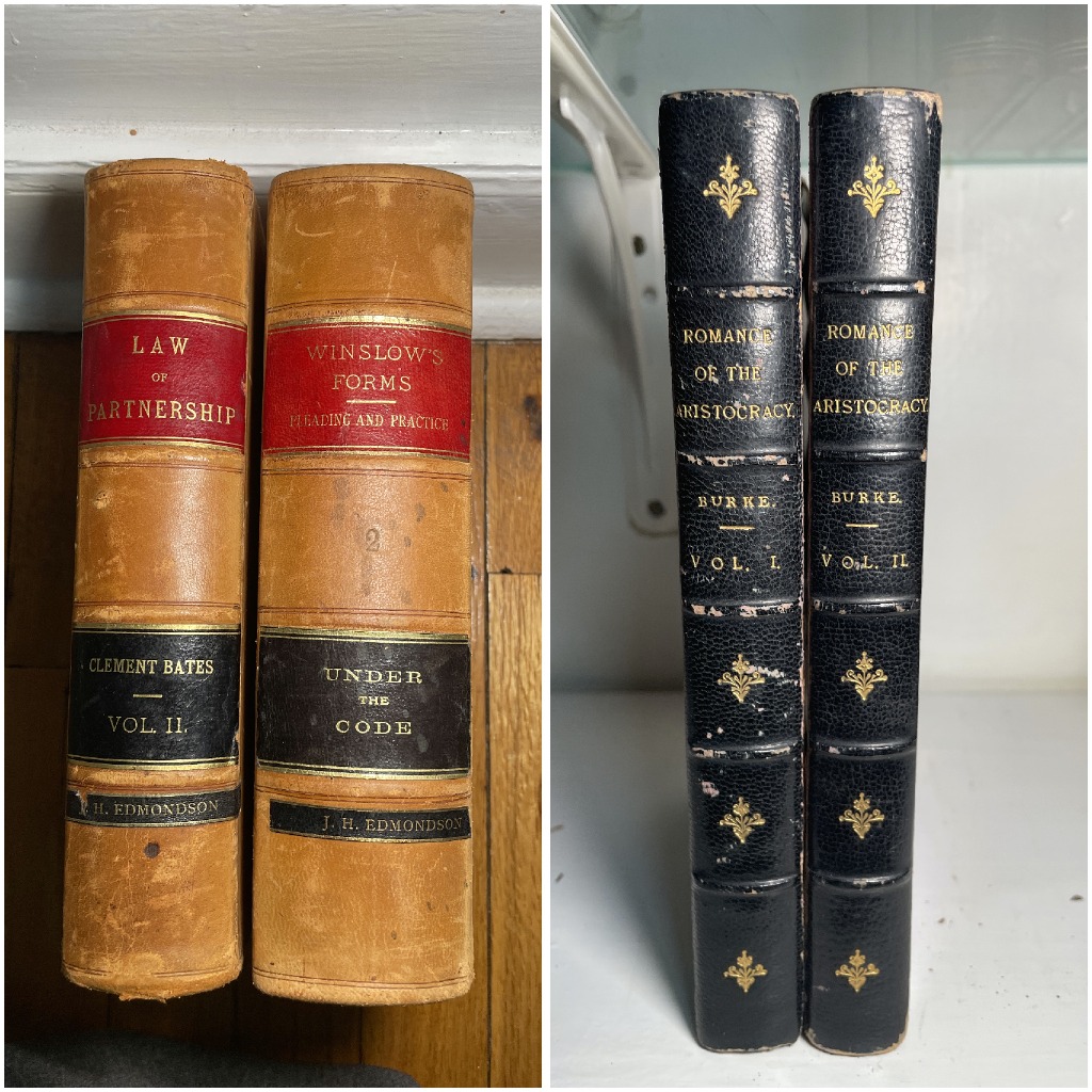 • Large collection of antique leather bound books