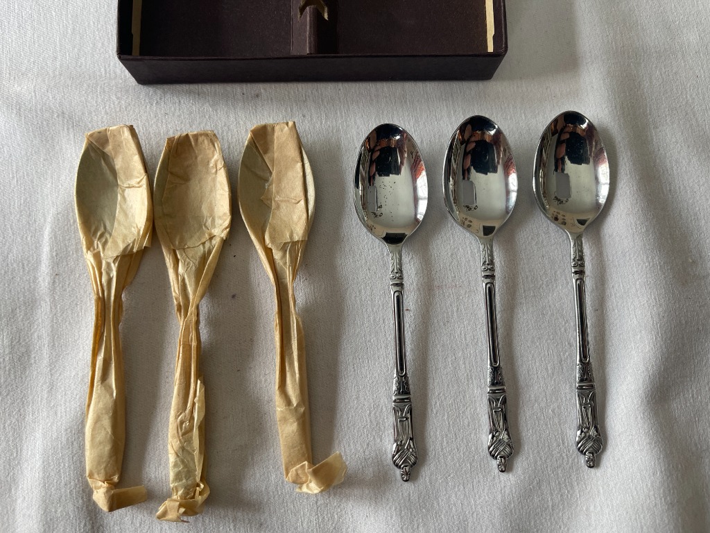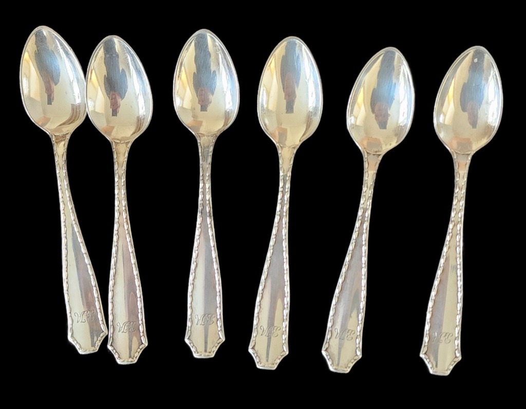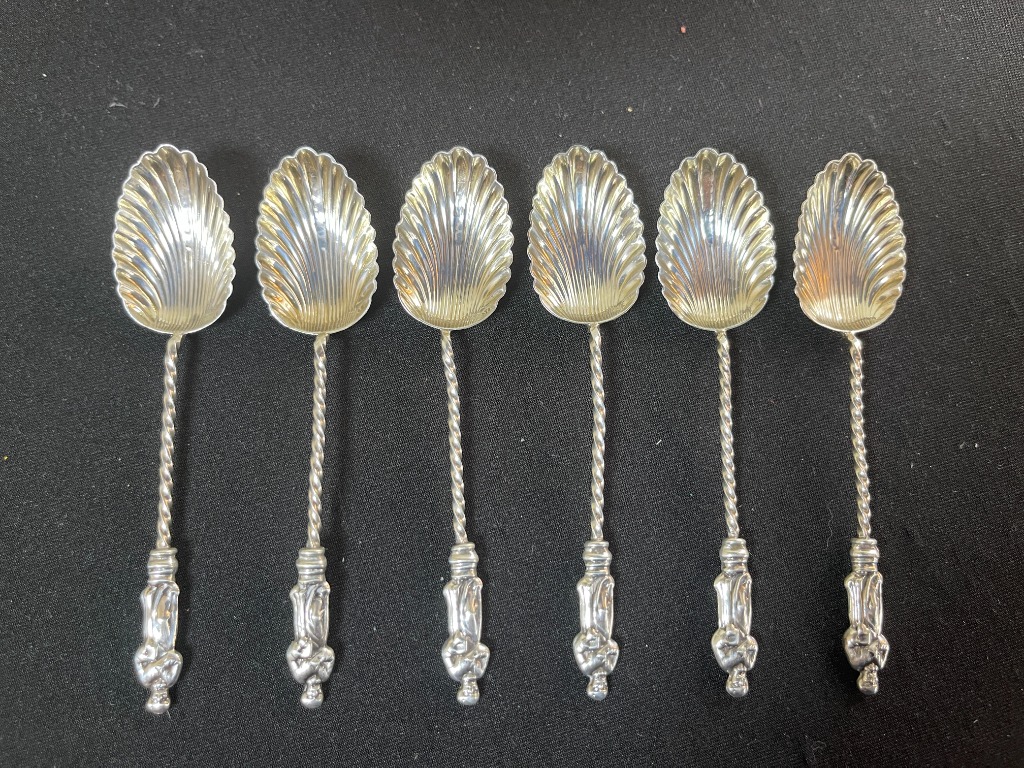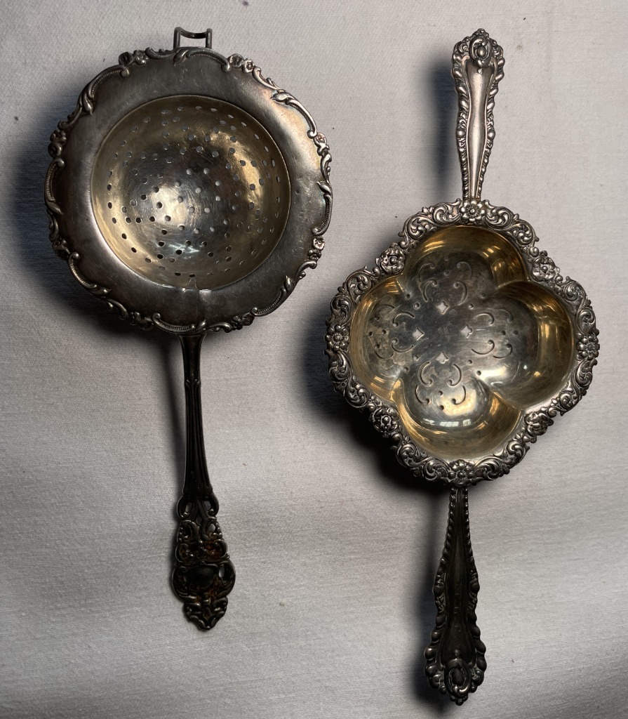 • Antique sterling spoons, knives, tea strainers, and serving pieces