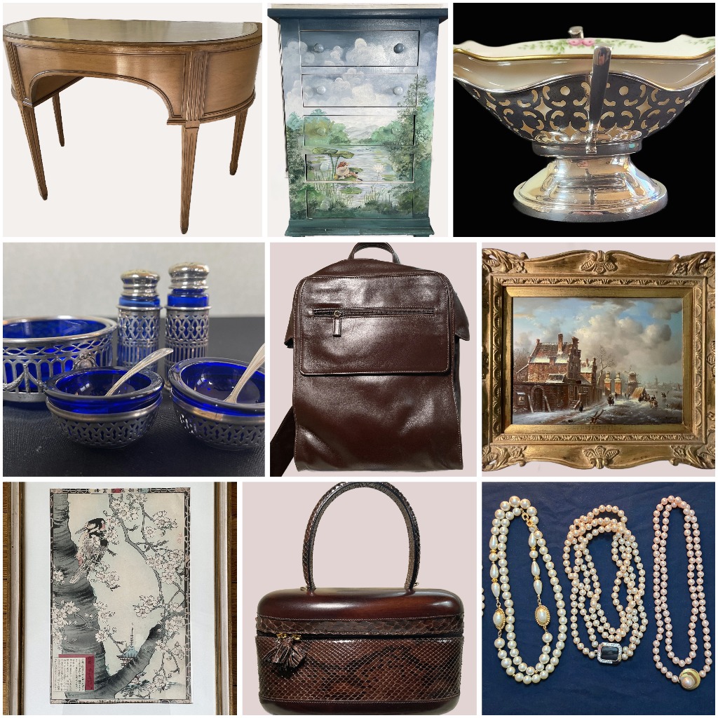 Discover an exceptional curated estate collection featuring fine furniture, artwork, silver, crystal, décor, and unique collectibles. This auction offers an impressive selection of French Provincial and classic American furnishings, including vintage desks, dressers, accent chairs, and handcrafted tables. Art enthusiasts will find signed oil paintings, French impressionist works, Japanese woodblock prints, and decorative engravings.